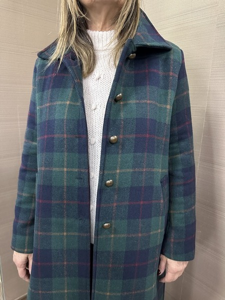 Cappotto a quadri ICONIC disponibile in due varianti colore: blu e verde e marrone e rosa scritta "je suis iconic" con perle nella schiena 35%acrilico 30%poliestere 15%cotone 15%lana 5%altre fibre taglia unica