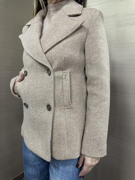 Cappotto corto MARKUP doppio petto spigato color cammello con bottone dorato a contrasto esterno shell: 50%poliestere 50%lana fodera:100%poliestere vesibilità regolare