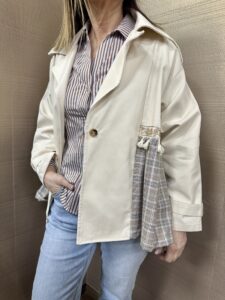 Trench MARKUP 100%cotone disponibile in beige e blu la modella indossa una tg.S per 1.70h