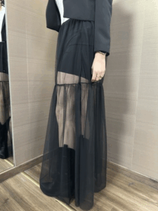 Gonna lunga MIMI'-MUA' in tulle colore nero 95%poliestere 5%elastane la modella indossa una tg.M per 1.70h