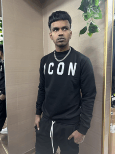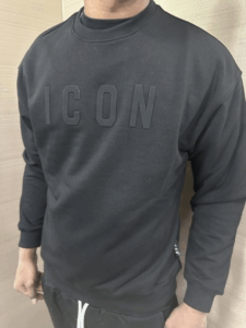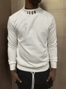 Felpa girocollo ICON con logo ricamato davanti disponibile in bianco e nero 88%cotone 12%poliestere il modello indossa una tg.L per 1.80h