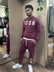 Pantalone tuta ICON color bordeaux con logo e polsino 65%cotone 35%poliestere il modello indossa una tg.L per 1.80h