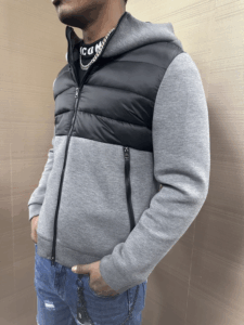 Felpa/giubbotto termico di OVER-D bicolore foderato internamente 80% cotone 20% poliestere(esterno) 100% nylon (interno) il modello indossa una tg.L per 1.80h