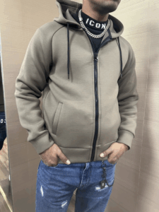Felpa/giubbotto termica SUPERIOR VINTAGE con cappuccio e zip 65%poliestere 35%cotone il modello indossa una tg.L per 1.80h (consigliata una taglia sopra per poca vestibilità)