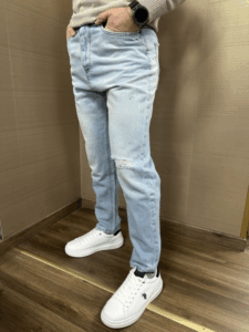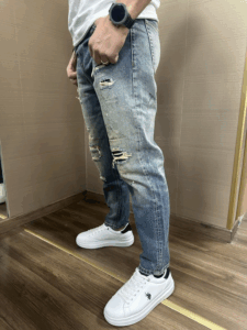 Jeans GIANNI LUPO slavato con strappi cuciti 100%cotone il modello indossa una tg.44 per 1.70h