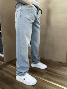 Jeans DISPLAJ modello wide lavaggio chiaro stone washed fit comodo e carrot il modello indossa una tg.44 per 1.70h