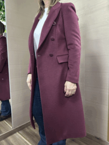 Cappotto lungo MIMI-MUA' modello doppio petto colore bordeaux 75%poliestere 20%viscosa 5%elastane consigliata una tg.in più