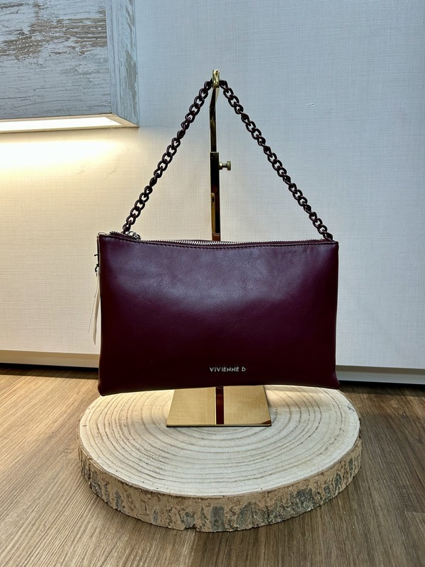 Pochette doppia in ecopelle liscia, con due tasche interna di cui una con zip,