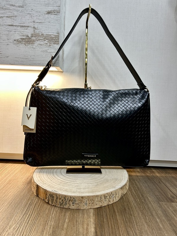 Borsa in ecopelle con logo VIVIENNE-D finitura dorata