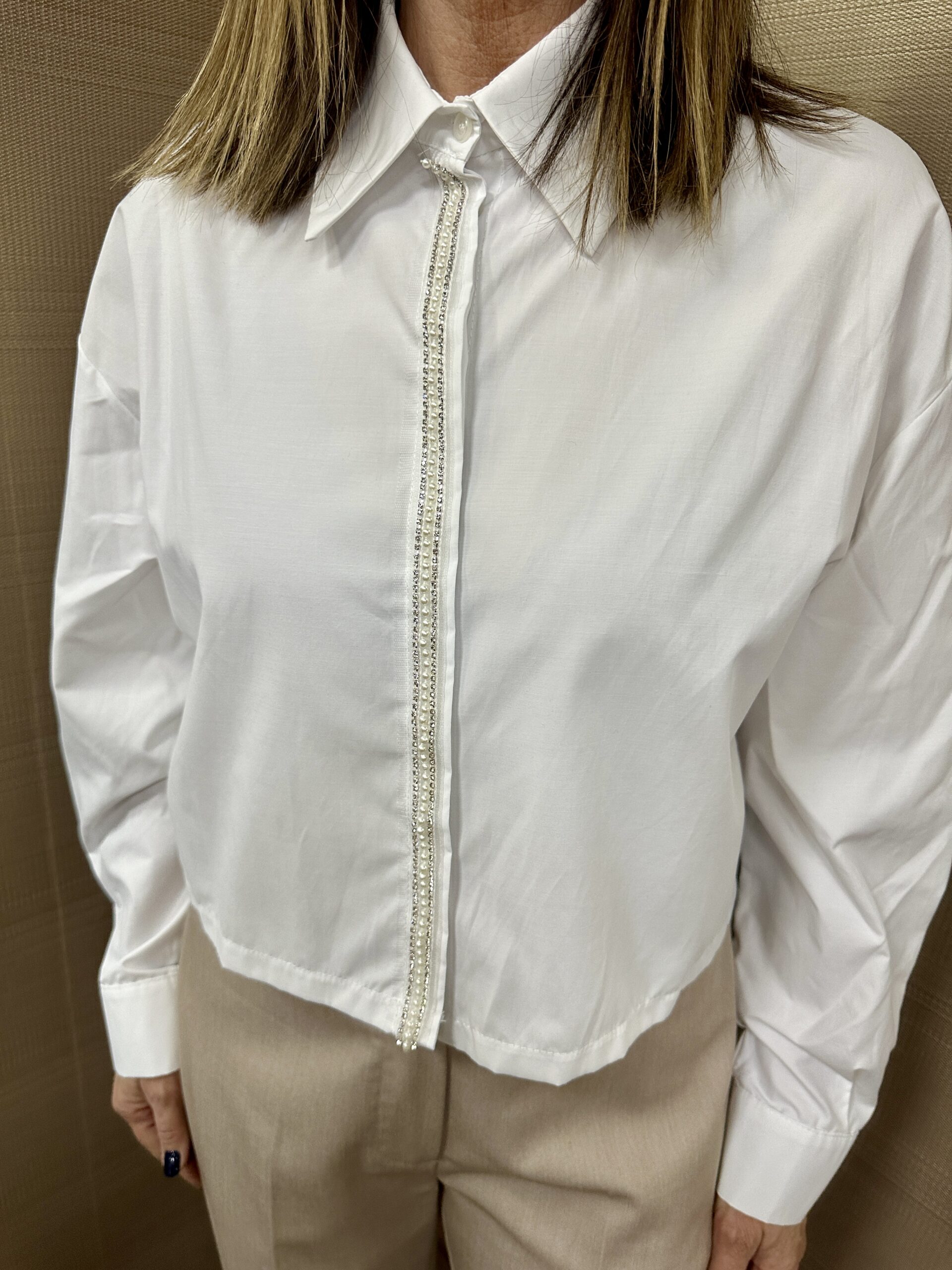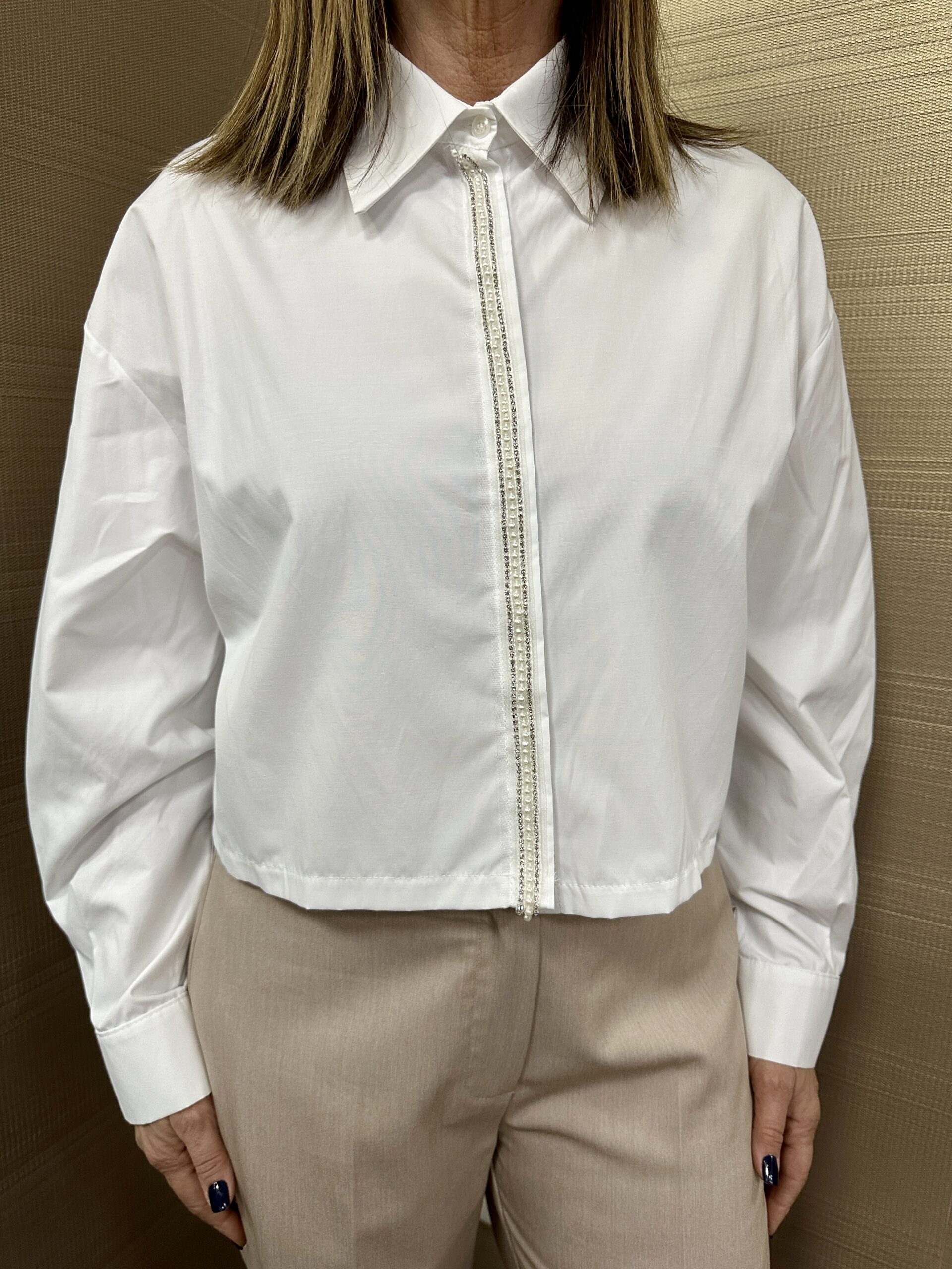 Camicia crop con perle MIMI’-MUA’