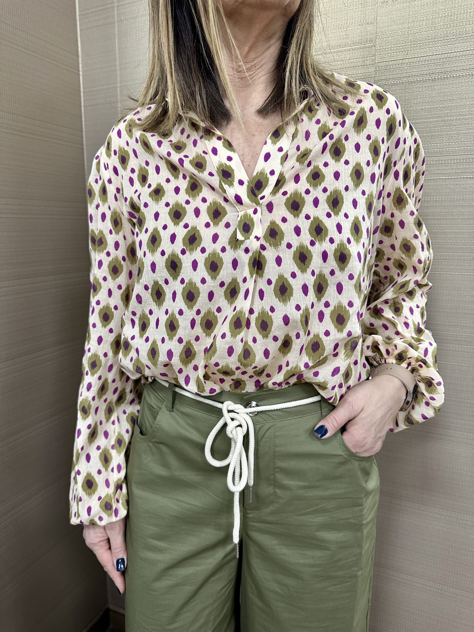 Camicia fantasia verde e glicine MIMI’-MUA’