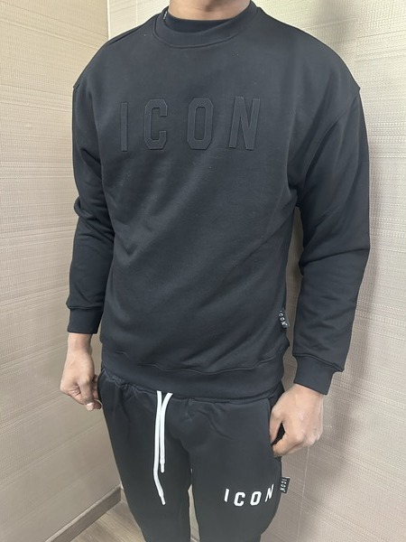 Felpa girocollo ICON colore nero con logo tono su tono in rilievo