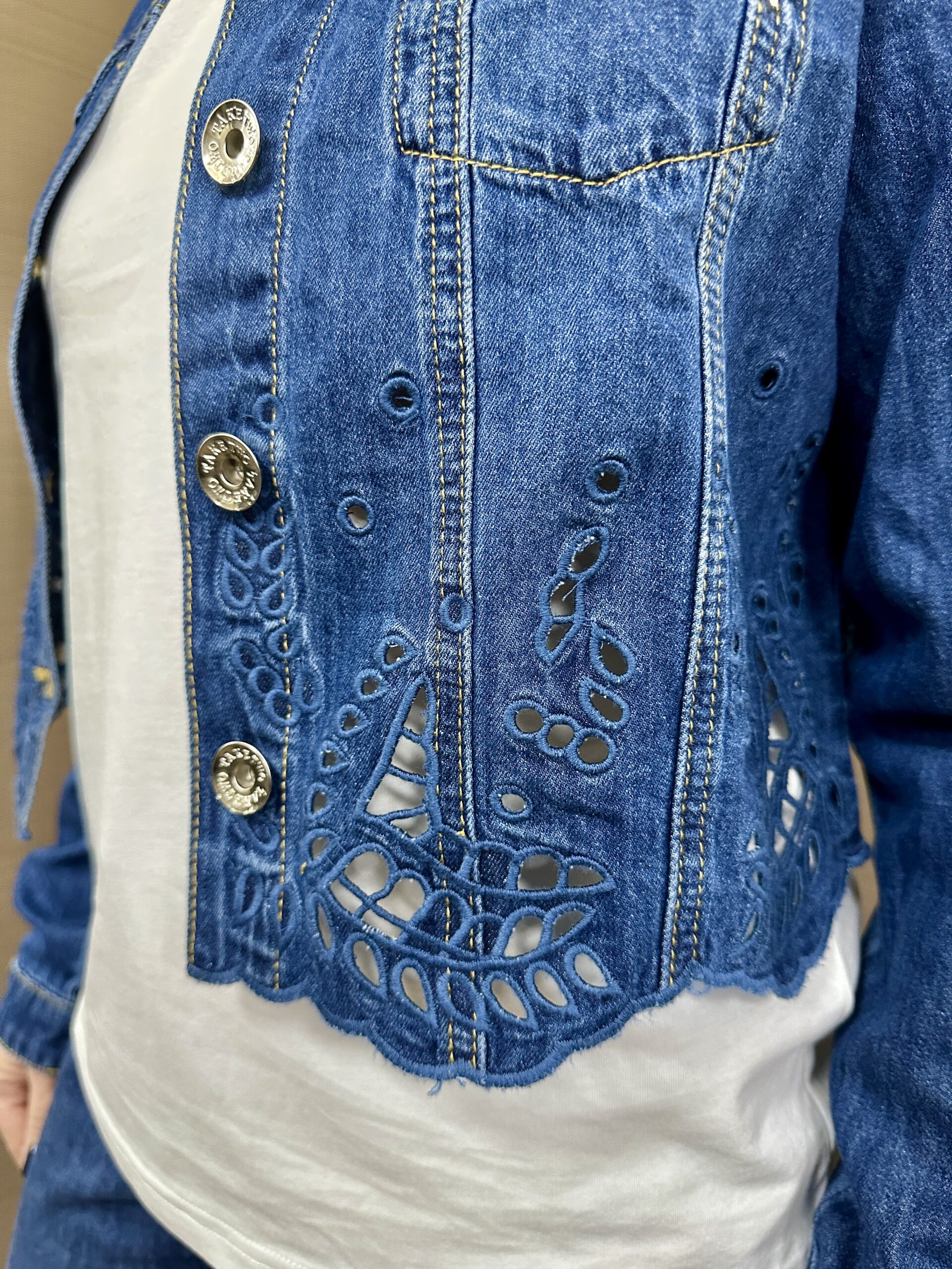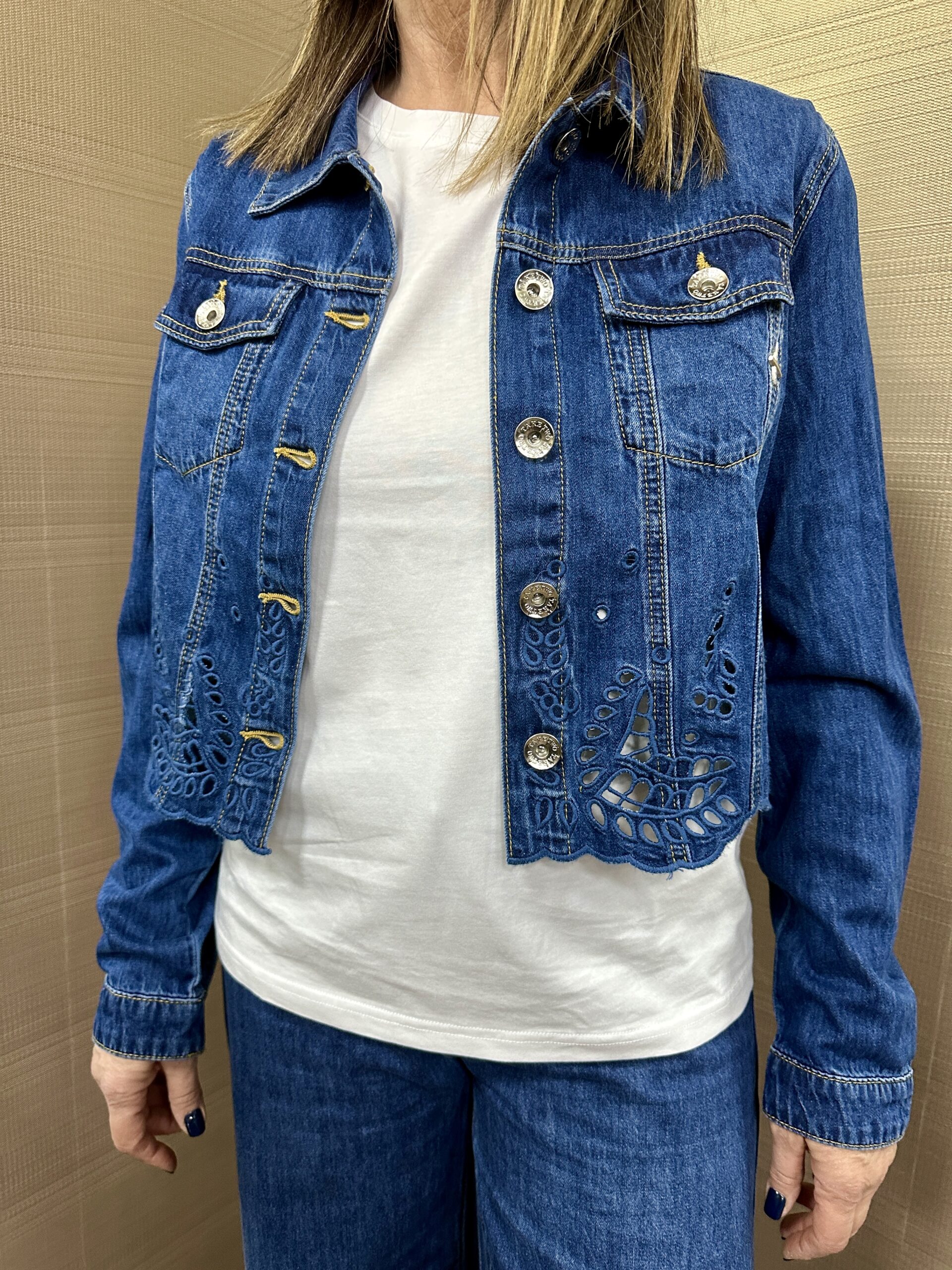 Giacca/giubbotto in denim TAKE TWO con ricamo in fondo