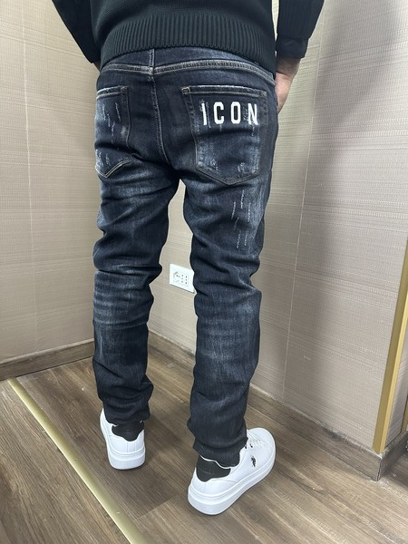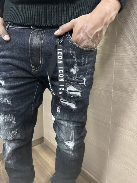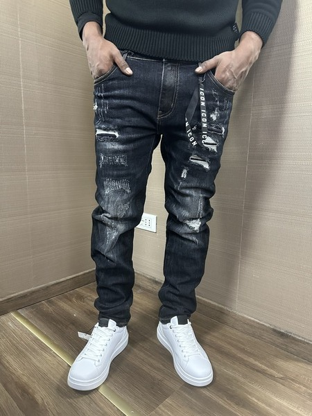 Jeans ICON modello skinny color nero con strappi cuciti e logo piccolo nella tasca dietro
