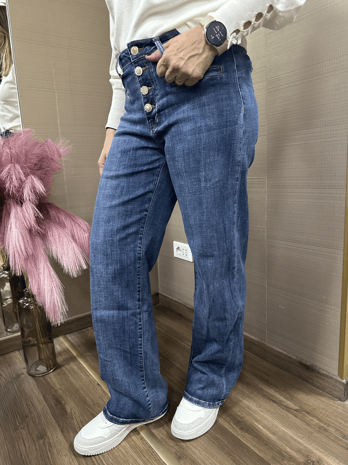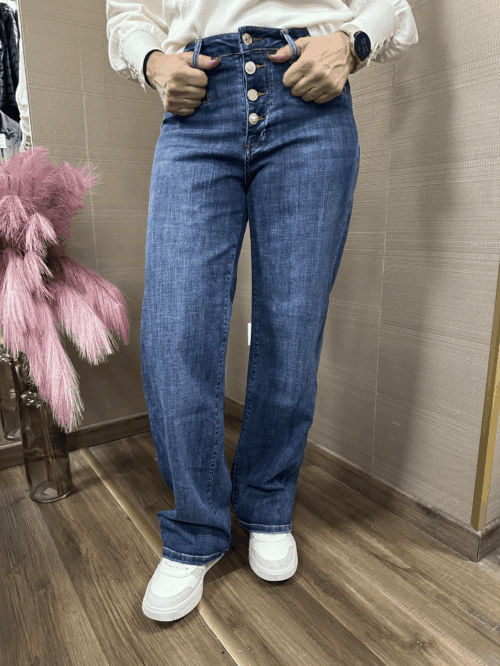 Denim flare TAKE TWO con bottoni gioiello, tela elasticizzata