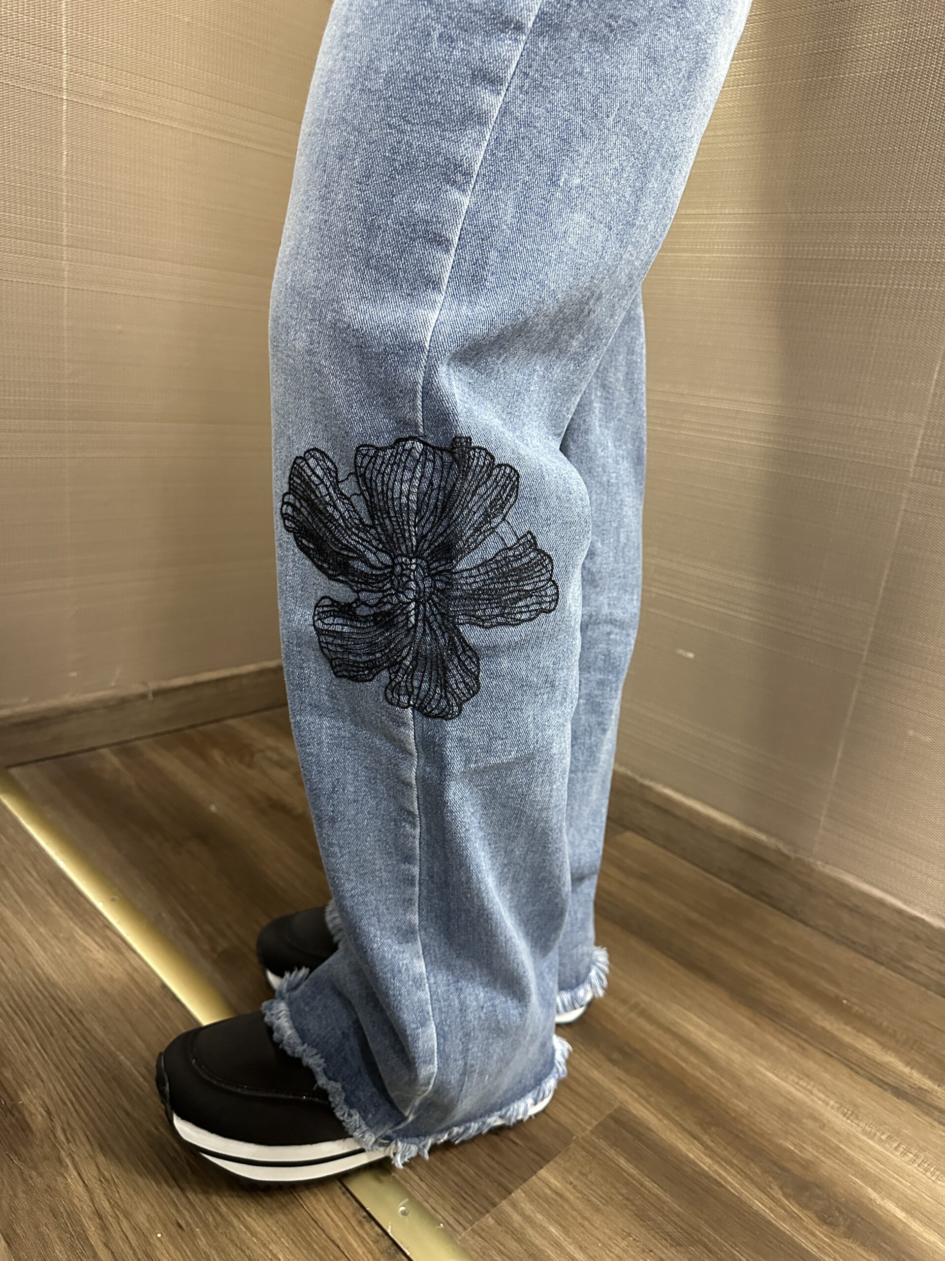 Jeans con ricamo floreale a contrasto nero MIMI’-MUA’