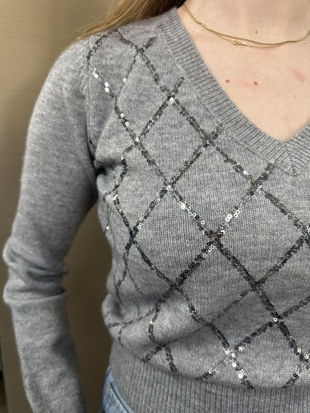 Maglia ARTIGLI scollo V con paillettes color grigio chiaro