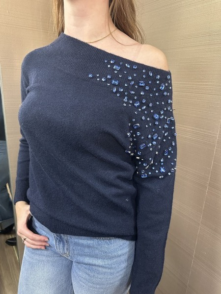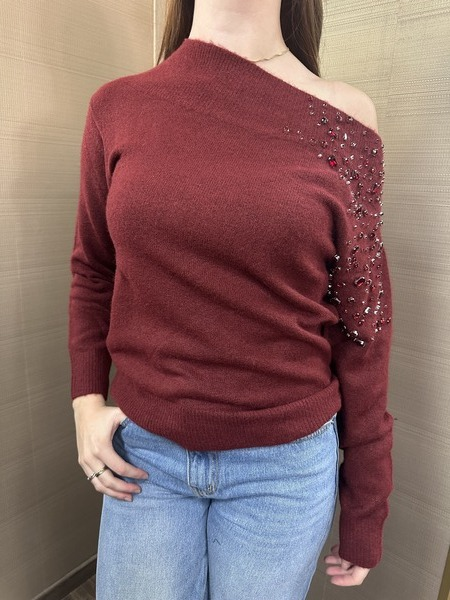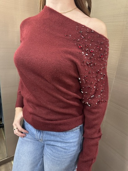 Maglia MARKUP scollo a barca con dettaglio brillocchi