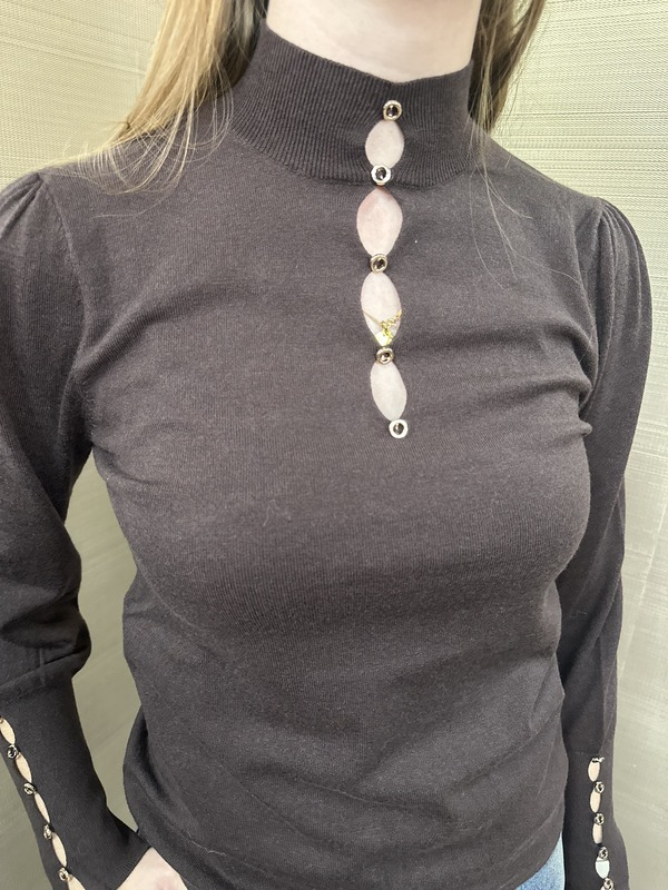 Maglia MOLLY BRACKEN colore moro con cut out davanti e bottoni oro a contrasto