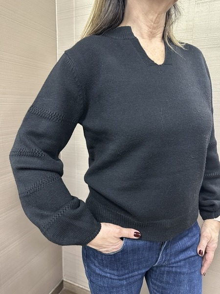 Maglia scollo V MIMI-MUA’ con manica a sbuffo