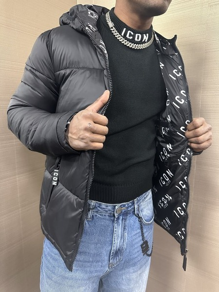 Piumino nero ICON con fodera legata all’interno e logo piccolo