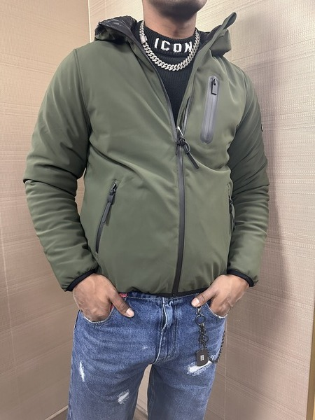 Piumino tessuto tecnico con cappuccio,idrorepellente