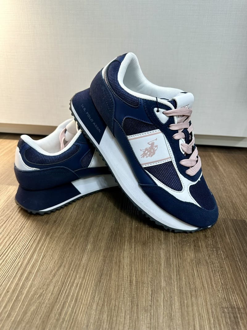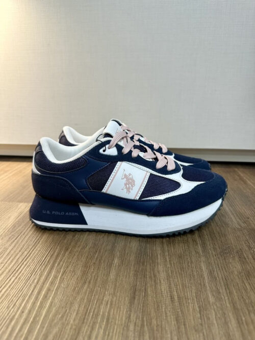 Sneakers US POLO color blu con contrasto bianco e rosa cipria con memory nella suola interna
