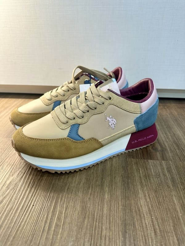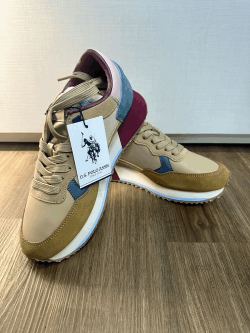 Sneakers US POLO color camel con dettagli bordeuax e ottanio con suola memory all’interno
