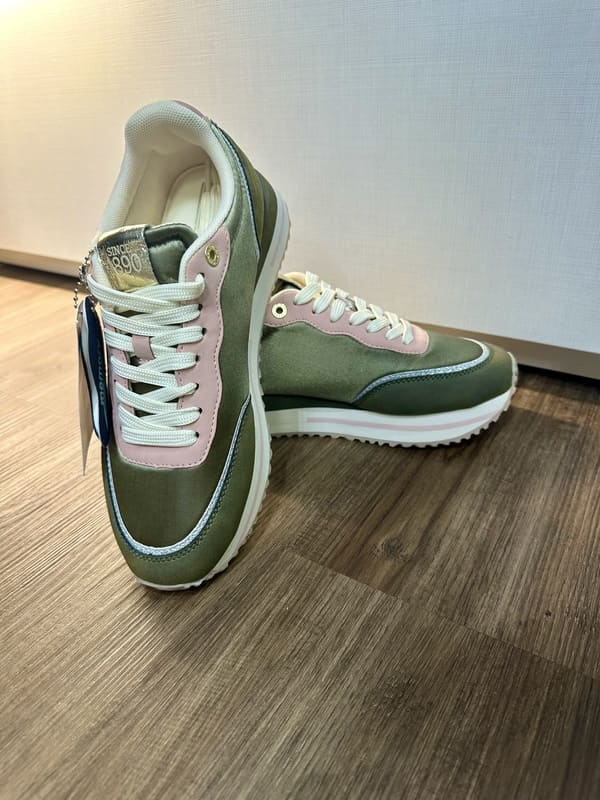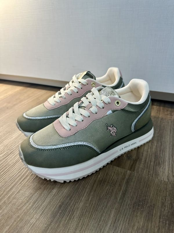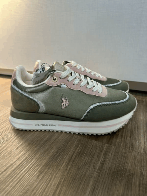 Sneakers US POLO Sacha color verde militare con cavallino e linguetta a contrasto rosa cipria