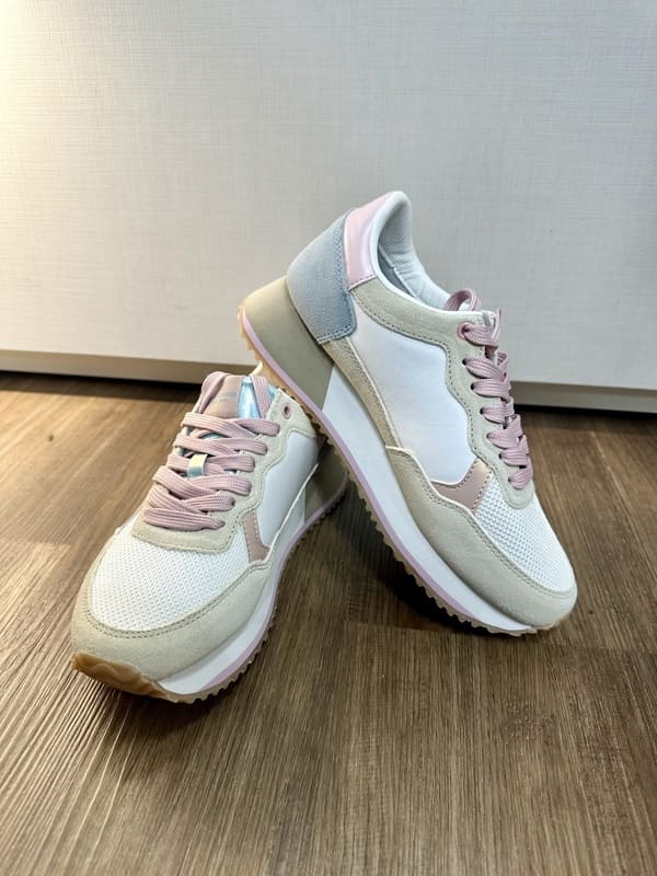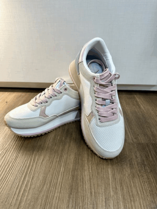 Sneakers US POLO color bianco con dettagli a contrasto rosa cipria, beige e azzurro