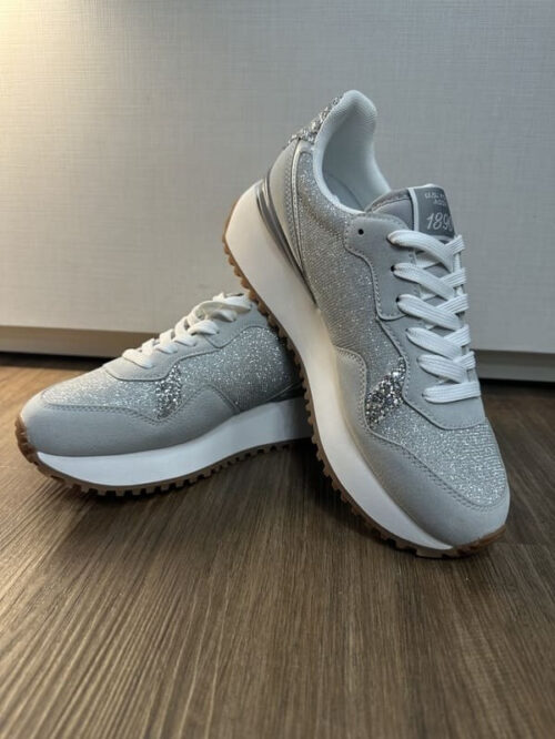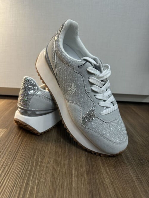 Sneakers US POLO color argento tempesta di brillantini con suola memory all’interno
