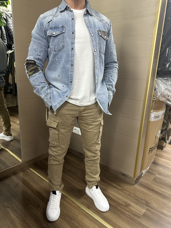 Camicia jeans GIANNI LUPO con taschino e toppa militare