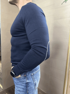Maglia girocollo con toppe GIANNI LUPO disponibile in blu e verde militare 40%poliestere 31%acrilico 23%poliammide 6%lana consigliata una taglia in più