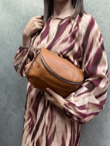 Marsupio Mimì-Muà con tracolla e zip davanti super leggero e pratico disponibile in 4 varianti colore: verde militare,nero,bordeuax e cuoio