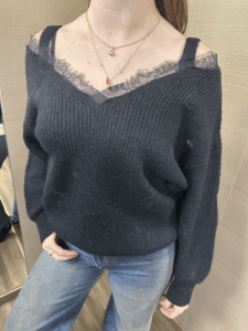 Maglia MOLLY BRACKEN con dettagli in pizzo e spalle nude 44%poliammide 34%acrilico 22%poliestere la modella indossa una tg.M per 1.70h