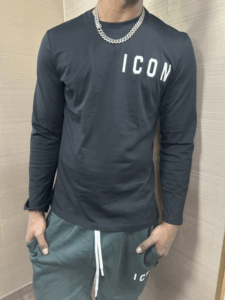 Maglietta manica lunga ICON con logo piccolo laterale 100%cotone vestibilità over il modello indossa una tg.M per 1.80h