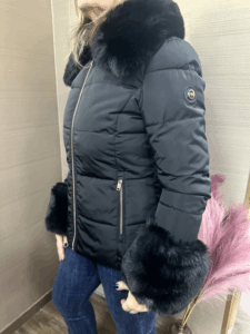 Piumino ARTIGLI colore nero con colletto e mascotti in ecofur rimovibili tessuto esterno:100%poliestere fodera:100%poliestere imbottitura:100%poliestere la modella indossa una tg.46 per 1.70h (consigliata una tg.in più)