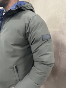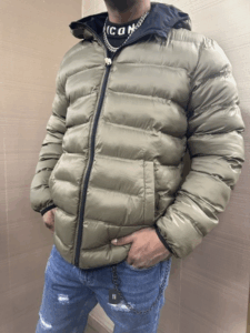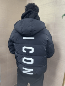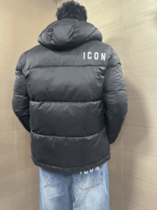 Piumino ICON con cappuccio logo verticale nella schiena e logo piccolo davanti Tessuto esterno 90%nylon 10%elastane Fodera 100%poliestere Imbottitura 100% poliestere Il modello indossa una tg.L per 1.80h