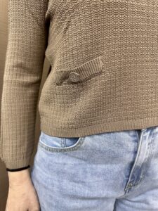 Maglia girocollo con taschino e bottone gioiello disponibile in color fango, rosa, beige e latte taglia unica 75%viscosa 25%poliammide