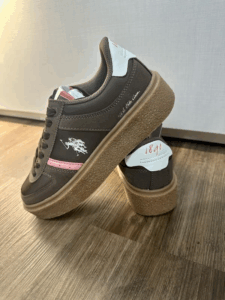 Sneakers US POLO color marrone con cavallino bianco a contrasto e dettaglio rosa, suola in gomma e tomaia in pelle comoda, leggera e con memory all'interno