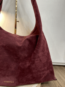 Shopper hobo scamosciata con logo VIVIENNE-D finitura dorata Chiusura con cerniera Manico singolo Dimensioni:45x30x13