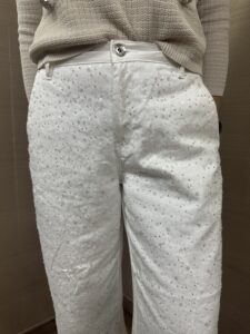 Pantalone palazzo MIMI'-MUA' stampa floreale colore fumo con possibilità di abbinarlo alla sua giacca 77%poliestere 17%viscosa 6%elastane