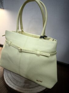Borsa shopper modello SPRING VIVIENNE-D in ecoplle con due tasche interne di cui una con zip e con logo embossed vivienne-d finitura dorata chiusura con automatico fibbia ricoperta in ecopelle doppio manico